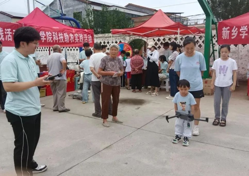 图为实践成员为小朋友操作无人机飞行