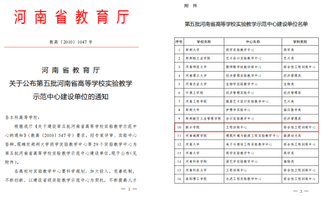 工程训练中心2010年获批建设河南省实验教学示范中心